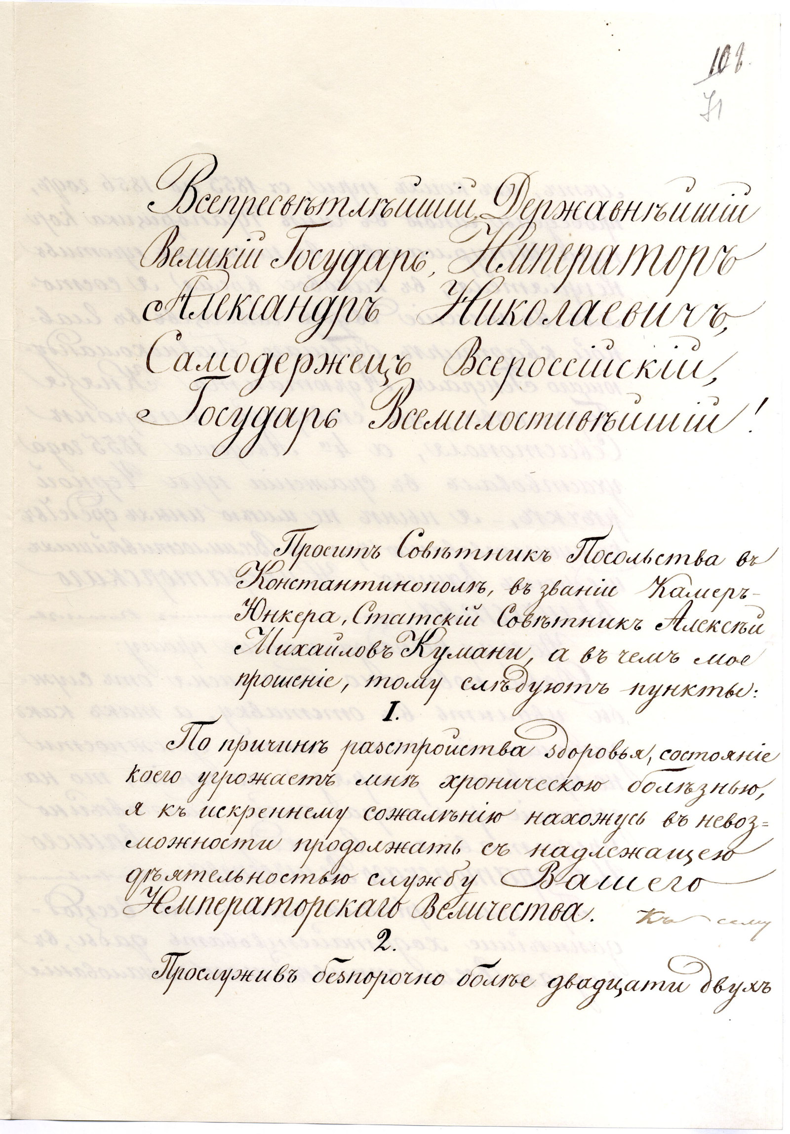 24 марта 1862 г. – назначен младшим секретарем миссии в Константинополе.